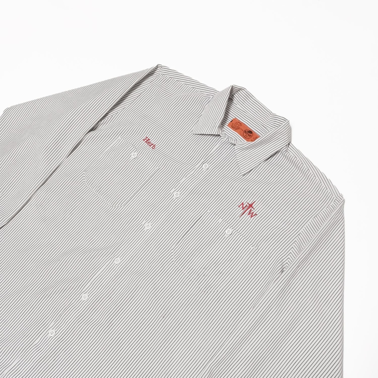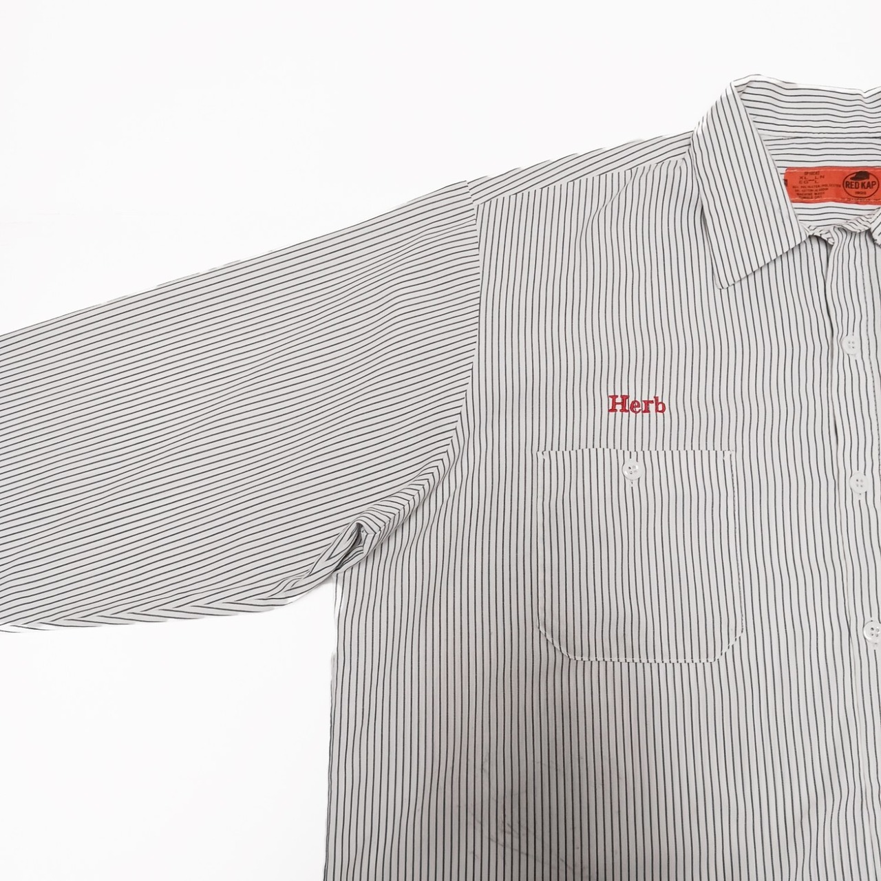 【90s~00s】RED KAP レッドキャップ 長袖 ワークシャツ ロゴ 刺繍 ストライプ XL B202507